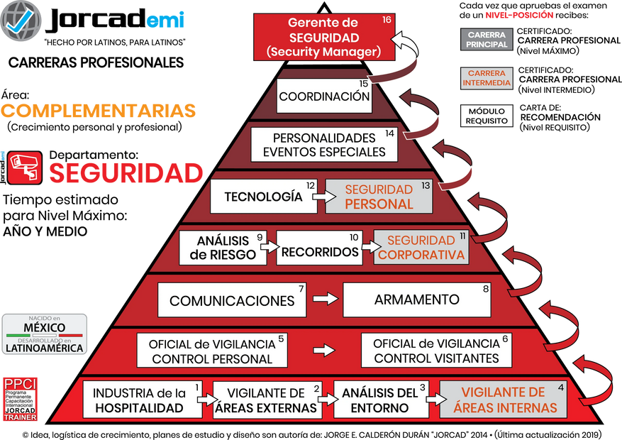Para obtener un certificado en SEGURIDAD CORPORATIVA, es necesario haber pasado por las anteriores (Industria de la Hospitalidad, Vigilantes de Áreas Externas, Análisis del Entorno, Vigilantes de Áreas Internas, Oficial de Vigilancia, etc.)